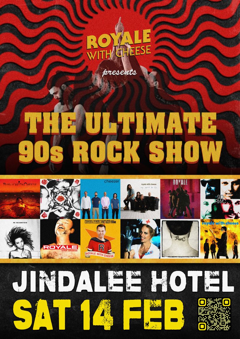 NOW TEN YEARS STRONG, Sydney's Royale With Cheese - Ultimate 90s Rock Show, AUSTRALIA'S PREMIER 90s ROCK SHOW hits the Jindalee Hotel on Saturday, February 14, 2026. Royale with Cheese is AUSTRALIA’S PREMIER 90s ROCK SHOW, playing all 90s rock and pop covers – from Seattle-sound to Grunge to Britpop and all the best Oz Rock from the 90s.